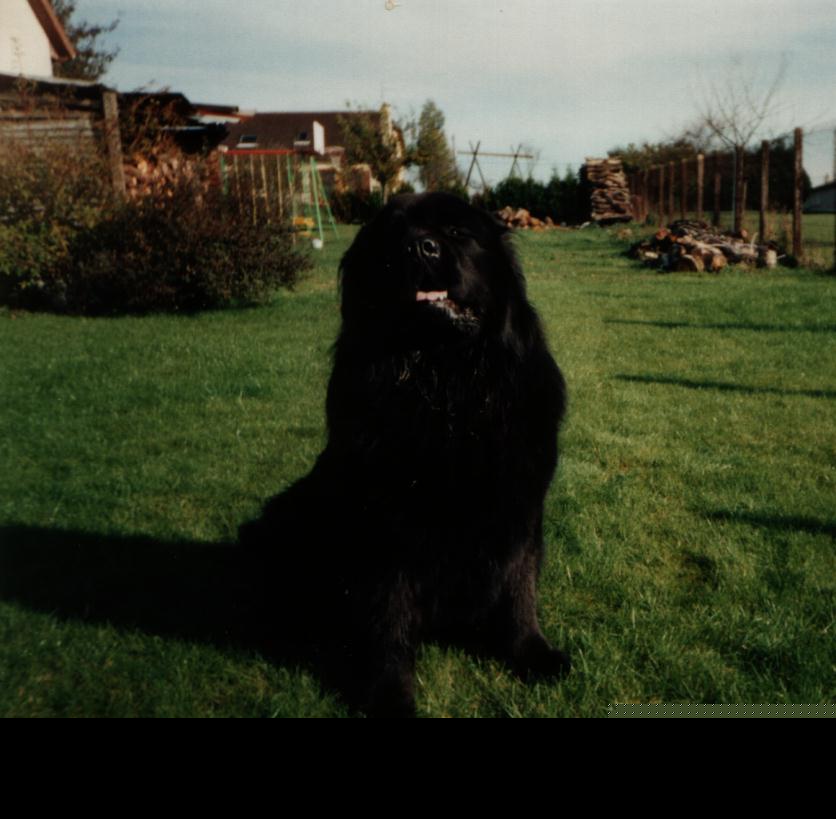 La robe est d'un noir de jais; la tête est large et massive et le museau, court. il existe aussi un terre-neuve noir et blanc dit Landseer.